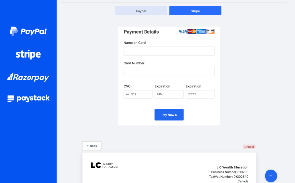 Accepting Online Payments empowers you to effortlessly collect payments from your clients. With our integration of PayPal and Stripe, two trusted and widely-used payment gateways, you can provide your customers with secure and flexible payment options.